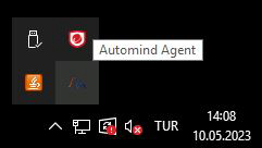 To completely shut down the agent application, right-click on the Automind Agent icon in the task manager and select the "Close" option from the menu that appears.