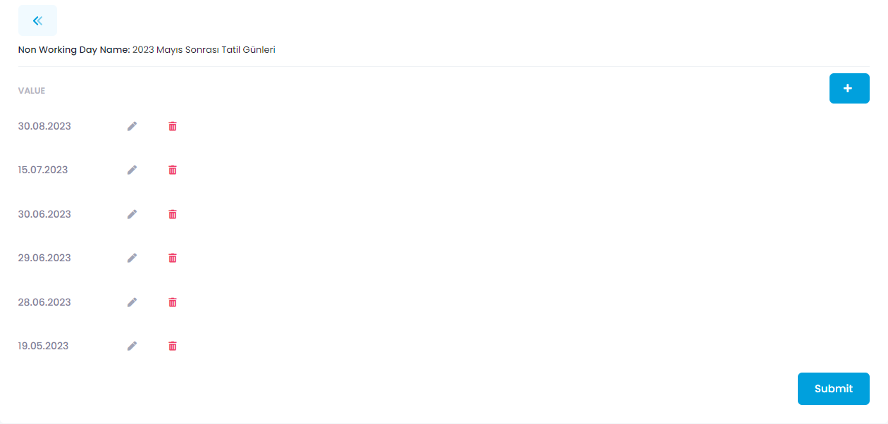 - Delete: Used to delete the non-working day.